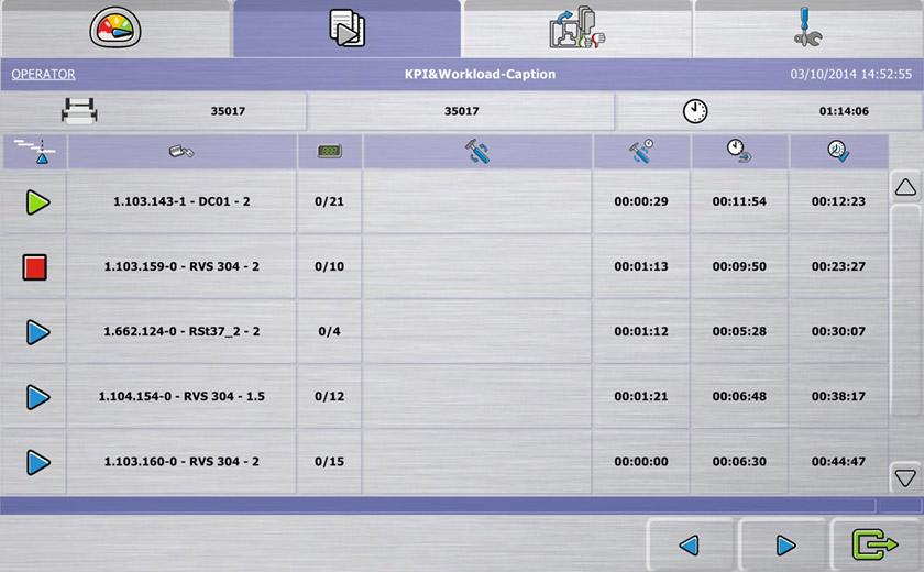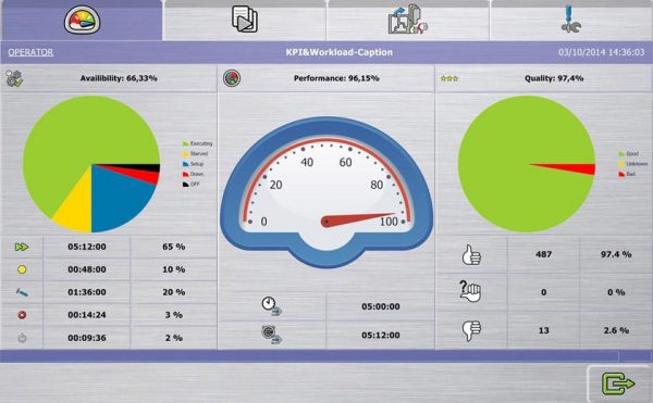 - KPI (Key Performance Indicators) history indication and actual machine status