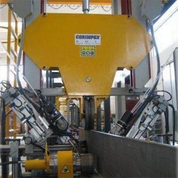 A flange post-deformation device mounted at the machine exit enables the machine to compensate for any flange deformation resulting from the welding process. This device is easily adjustable to handle various flange dimensions and a variety of different deformable thicknesses up to a maximum of 50 mm at maximum width. The welding line can be equipped with a control PLC, user interface with Touch-screen panel and a special connector for connecting to an Ethernet network.