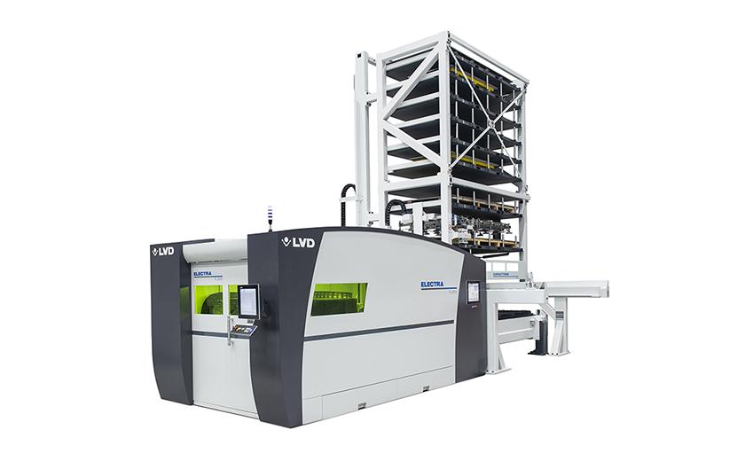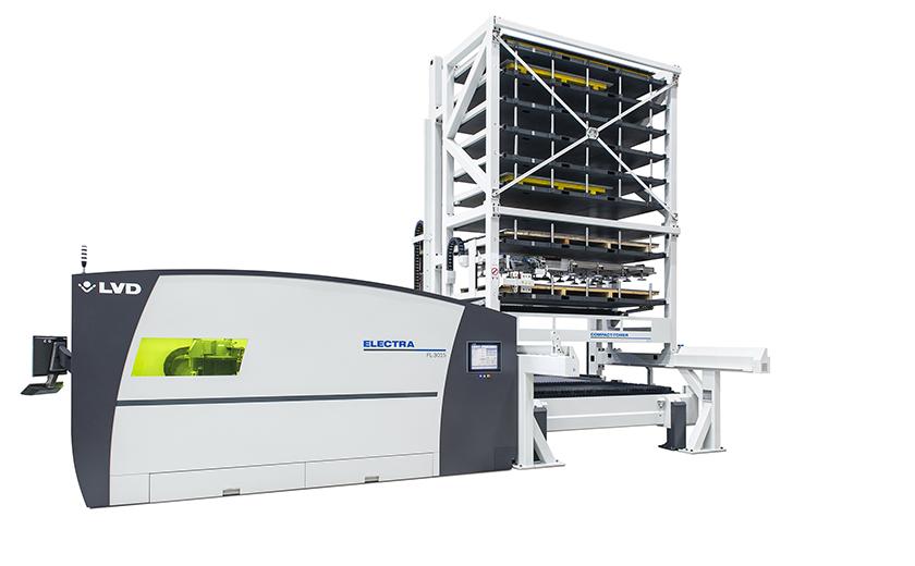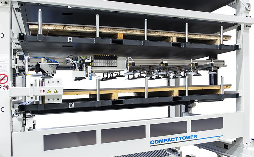 An integrated carriage loads the raw materials and stacks finished parts on the unload pallet. - Automatic zone selection