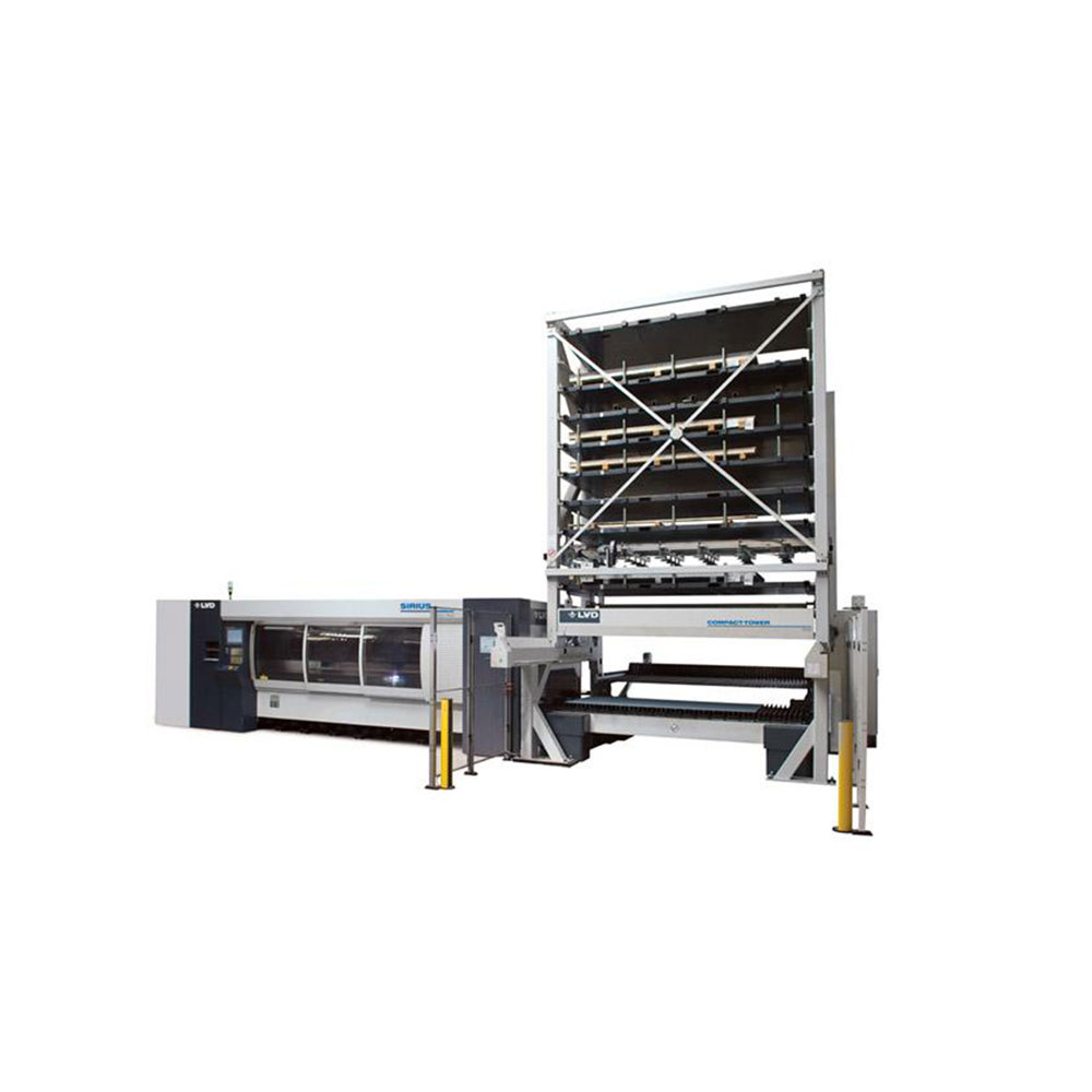 An integrated carriage loads the raw materials and stacks finished parts on the unload pallet. - Automatic zone selection