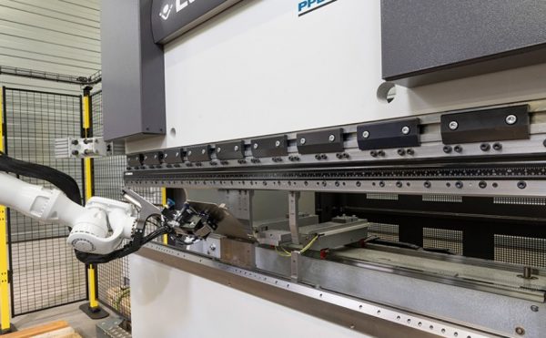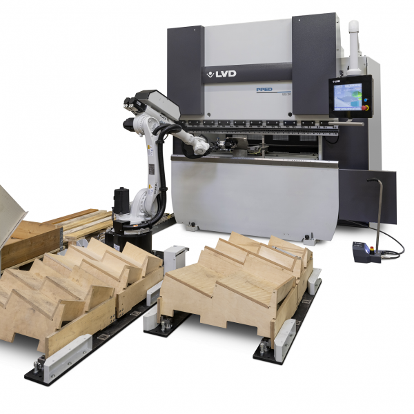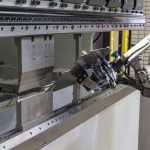 A universal gripper designed by LVD effortlessly handles different part sizes, bends three flanges without regripping and easily moves between the tool stations. - Automatic or manual operation