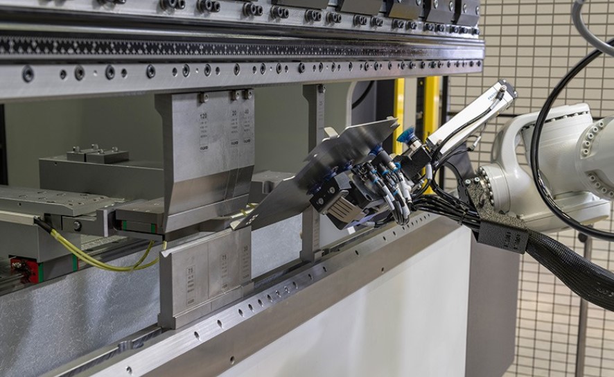It takes the CADMAN® software just 10 minutes to automatically generate a bending and robot program and only another 10 minutes for set-up and production of the first part. Operators of all skill levels can work with the cell. - Versatile gripper