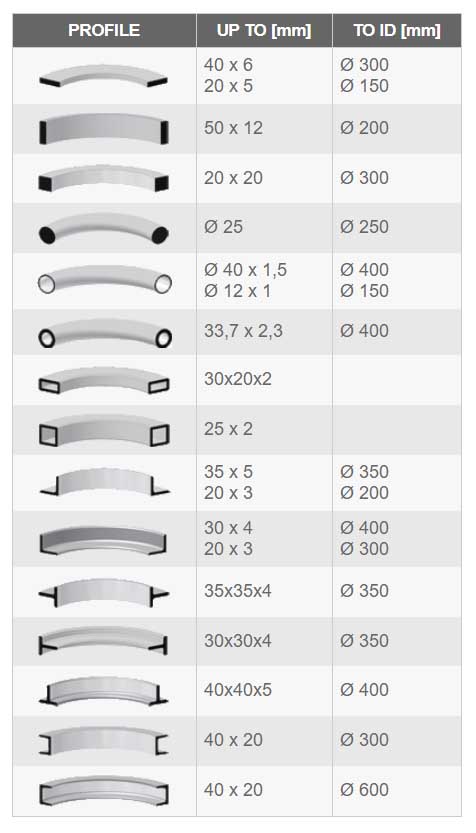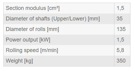 - Bending rolls independently adjustable, for double pre-bending capability on the leading and trailing end of symmetrical profiles