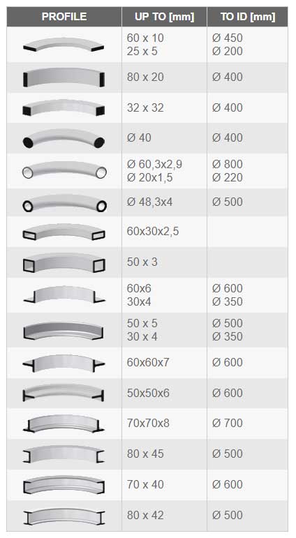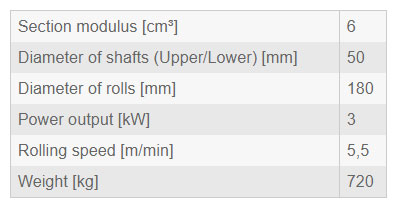 - Bending rolls independently adjustable, for double pre-bending capability on the leading and trailing end of symmetrical profiles