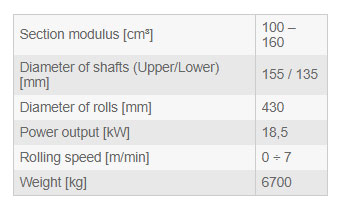 • Bending rolls independently adjustable, for double pre-bending capability on the leading and trailing end of symmetrical profiles