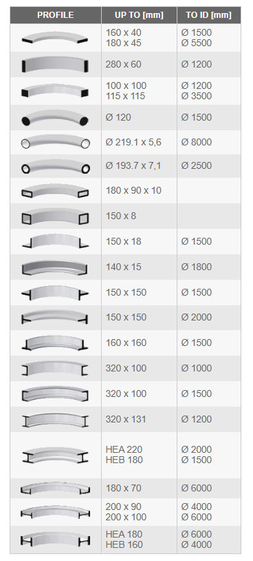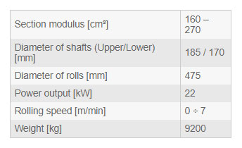 - Bending rolls independently adjustable, for double pre-bending capability on the leading and trailing end of symmetrical profiles