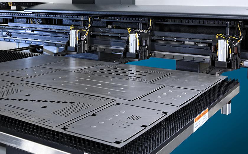 The Strippit E offers the easiest tool changeover in the industry. Quick-change die holders reduce setup time. - Smart clamp