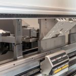 Two programmable sheet followers reinforce the sheet during bending. The make full contact with the plate, preventing sheet sagging.