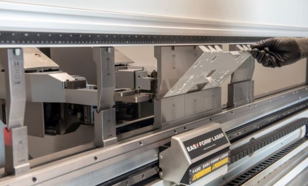 LVD’s Easy-Form® Laser (EFL) system ensures the first bend is accurate every time. The EFL system transmits the digital information in real time to the CNC control unit, which processes it and immediately adjusts the position of the punch to achieve the correct angle. The bending process is not interrupted and no production time is lost.