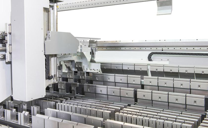 The tooling warehouse is integrated into the machine, not taking extra space next to it. It is not only space-saving but also intelligently configured with all the necessary tooling for your applications.