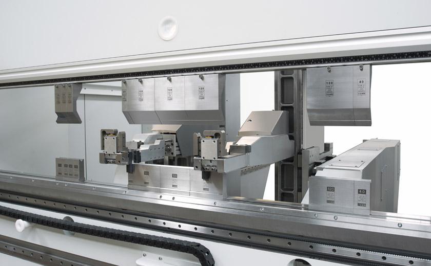 Innovative grippers built into the machine’s back gauge fingers serve as the tool changer mechanism. As the operator prepares for the next job selecting the worksheet or moving blank parts to the machine, ToolCell automatically changes the top and bottom tooling.