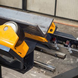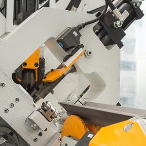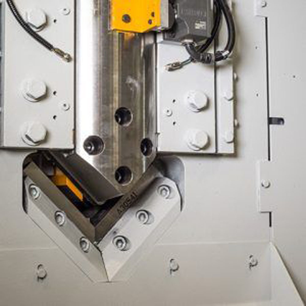 Faster single cut shearing unit, whose force and speed are automatically adjusted by the CNC according to the material size being processed.