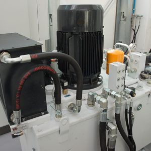 Hydraulic power pack of new concept, allowing the automatic CNC controlled adjustment of the working units pressure to optimize each operation.